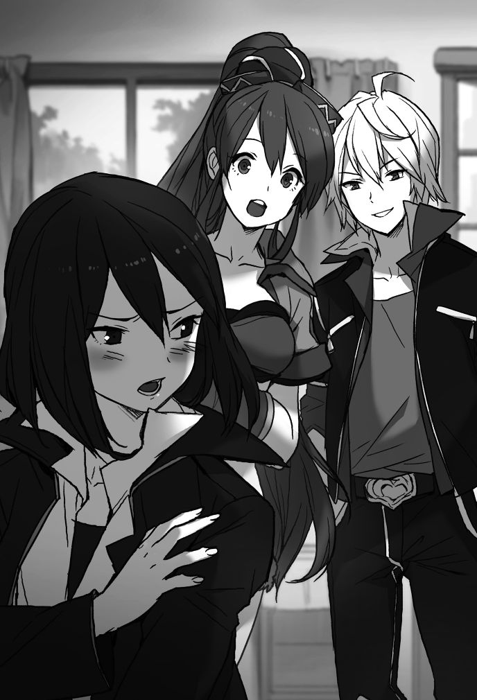 じたばたと暴れるカグツチを抱き寄せてはしゃぐアインと、その様子をウロの肩の上で冷静に見つめるワダツミ。