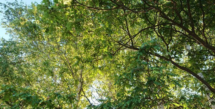 木々の隙間に見える空は高く、うっすらと青かった。
