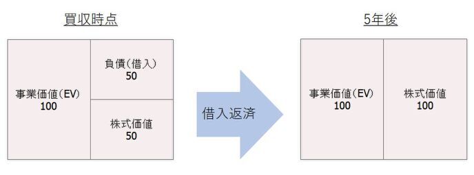 A社は買収後、銀行借入を5年間で全額返済しました。