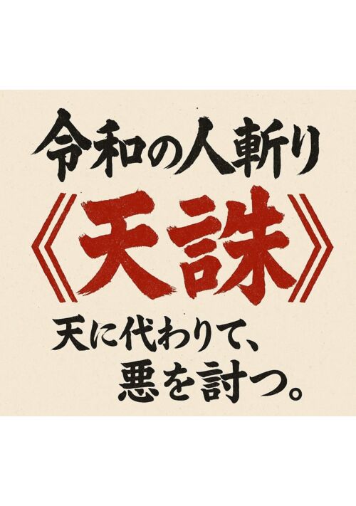 かつて“天誅”を振るった剣士は、現代社会に潜む本当の悪と向き合うため、新たな運命へと足を踏み出していく。