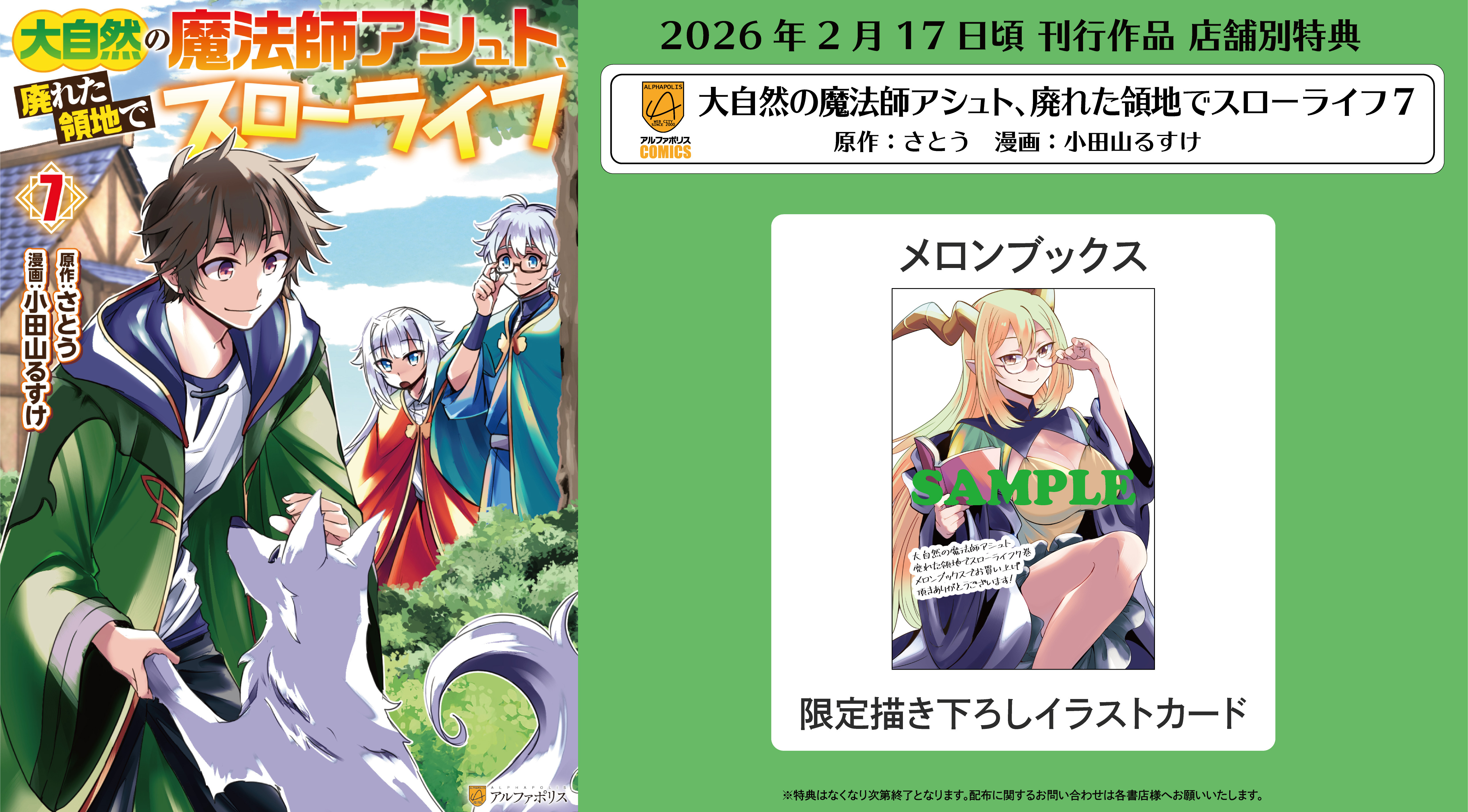 アルファポリスコミックス「大自然の魔法師アシュト、廃れた領地でスローライフ7」
