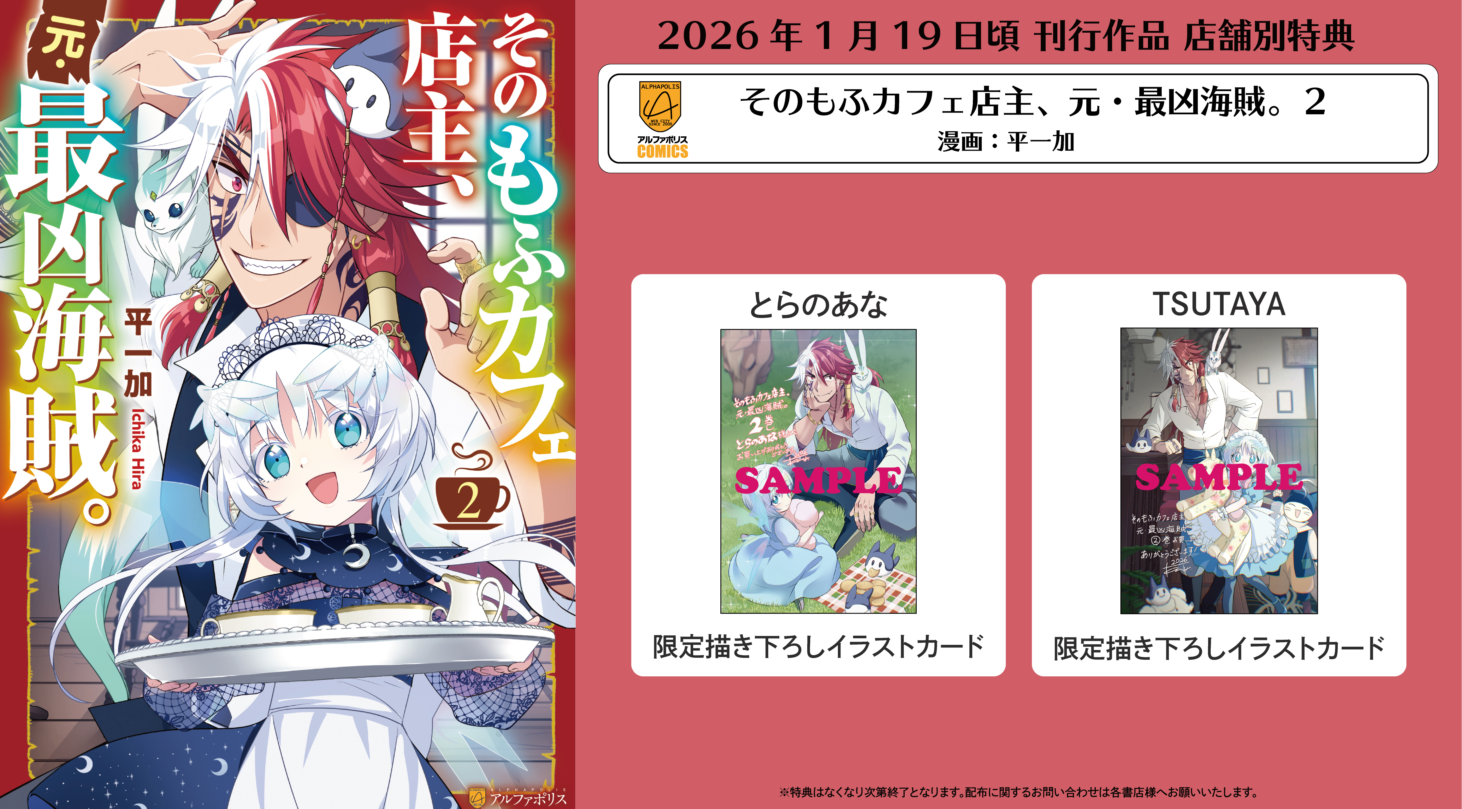 アルファポリスコミックス「そのもふカフェ店主、元・最凶海賊。2」