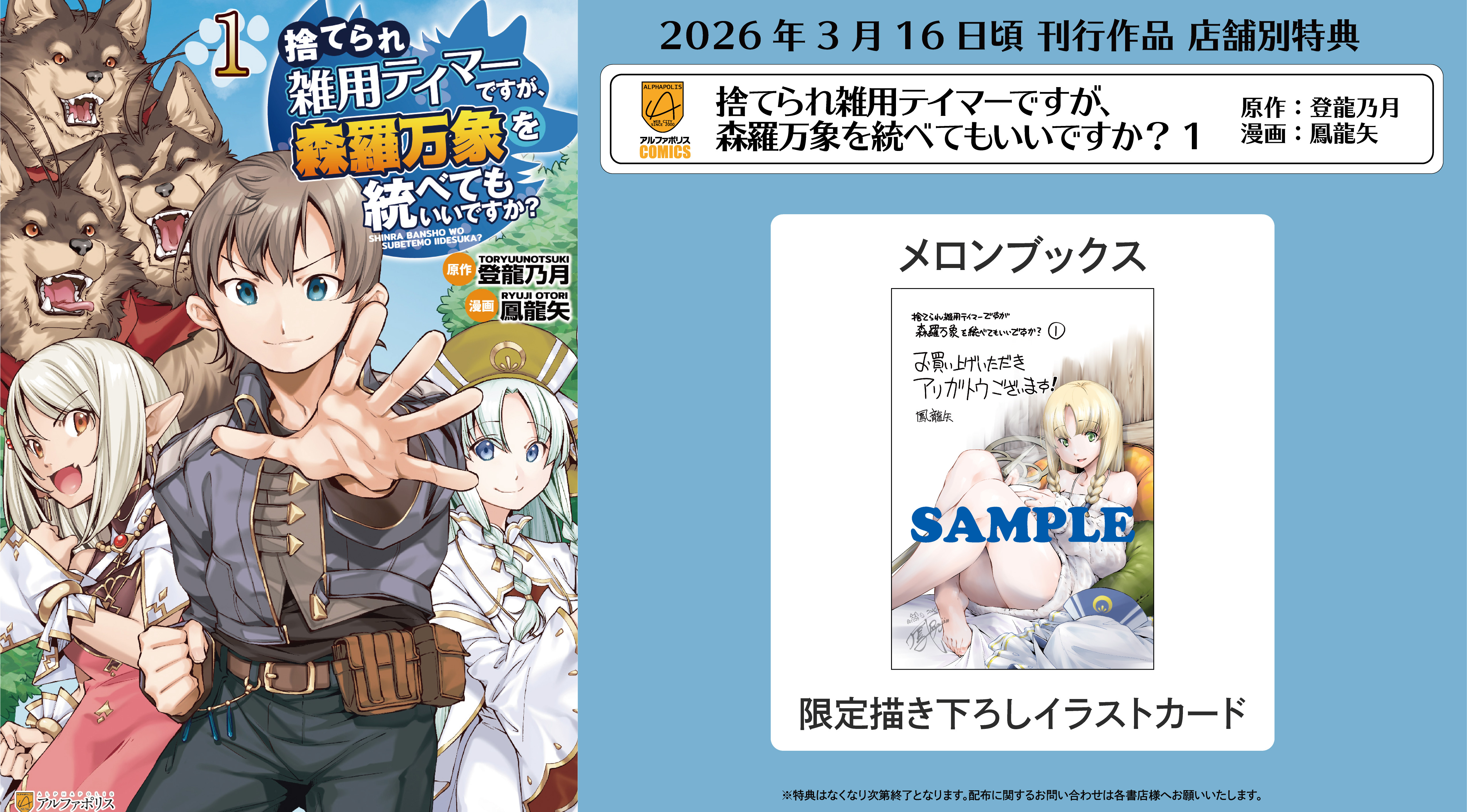 アルファポリスコミックス「捨てられ雑用テイマーですが、森羅万象を統べてもいいですか?1」