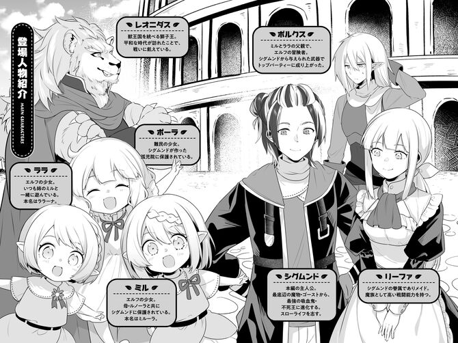 異世界転生し、最強の吸血鬼・不死王に成り上がったシグムンド。世界を支配できる力を得ながらも、エルフの子供や魔物の従者と一緒に、気ままなスローライフを満喫している。シグムンドが築き上げた城塞都市は急成長を遂げ、商人や冒険者が世界中から集う大都市へと発展していた。だが繁栄の裏で浮上したのは、荒くれものたちによる治安問題。そこで彼が思いついた秘策――それは、ストレス発散のための闘技場建設だった。シグムンドが育て上げた子供たちはもちろん、彼に興味を抱き偶然街を訪れていた獣王国の王たちまで参戦!? 闘技大会は想像を超える盛り上がりを見せ……