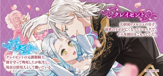 没落した男爵家に生まれたリゼ。実は彼女の前世は、剣聖と呼ばれた女騎士アメリアで、皇子クレイセントを守り殉死したことを悔やみ、生まれ変わったのだった。今世でも皇子をお守りしようと、リゼは皇宮の使用人に応募。だが、再会した彼は十八年間も離宮に引きこもり、すっかりひねくれ者になっていた! なんとかクレイセント専属の使用人になり、前世の記憶をもとに彼に近づこうとするリゼ。ようやく心を開いてくれたと思ったら、彼の視線は甘く熱を孕んでいて……!? 「リゼ、もう二度と離さないから」もしかして、生まれ変わりだって気付かれている!? 皇子を守りたい元女騎士と愛が重めな皇子の濃密ラブファンタジー!