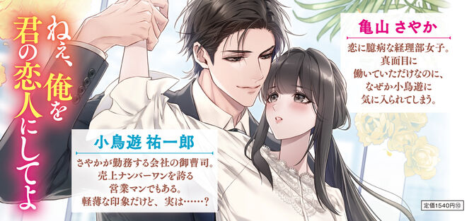 過去の辛い失恋から逃れるため、東京で暮らすさやか。恋愛を遠ざけ、仕事に精を出していたのに自社の御曹司であり営業部の王子様こと小鳥遊(たかなし)になぜか気に入られてしまった。しかし、とあるきっかけから二人は秘密の契約を結ぶことになり――!? 「悪くなかったでしょ? 俺にキスされるのも、抱きしめられるのも」軽薄な小鳥遊にうんざりしていたさやかだったが、彼の意外な素顔を知り、翻弄されていく。「頑張って捕まえたんだ――もう二度と離さない」極甘濃密オフィスラブ、開幕!