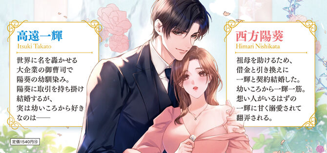 デザイナーとして働く陽葵は、叔父が背負った借金のため、好きでもない相手との結婚を迫られる。そんな矢先、幼馴染で初恋相手の一輝と偶然再会し、借金の肩代わりと引き換えに後継ぎを産んでほしいと言われ契約結婚することに!? 偽りの夫婦だとしても、好きな相手と結婚したい。そう思う陽葵を待っていたのは一輝との甘い溺愛生活だった。まるで本当の妻のように愛してくる一輝に、陽葵は戸惑うばかりで――? 一途な御曹司に乱される、両片想いのすれ違いラブ!