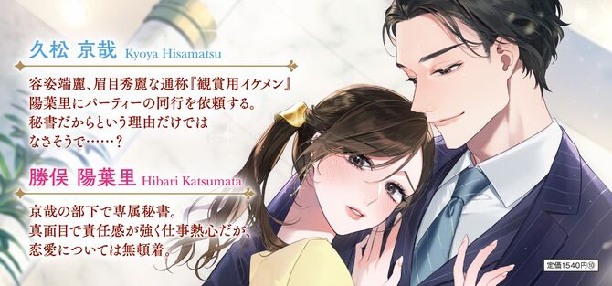 ホテル事業部部長である京哉の秘書を務める陽葉里は、クールで堅物な彼を『観賞用イケメン』と評し、仕事以外で関わることはないと思っていた。しかし、パートナーとして同行したレセプションパーティーで、ひょんなことから一夜を共に過ごしてしまう。必死に忘れようとしていた矢先、京哉が交通事故に巻き込まれ……!? 記憶が混濁した京哉は陽葉里のことを恋人だと思い込み、溺甘に豹変。「ほら、俺が大好きって顔してる」クールな上司の溺愛に蕩かされる、濃密ラブストーリー!