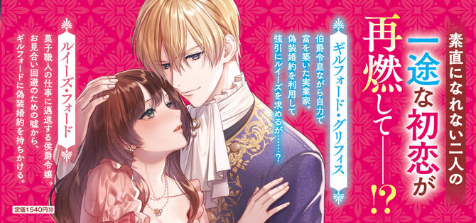 菓子職人の夢に邁進する侯爵令嬢のルイーズ。親族からのお見合い猛攻を断るために、心に決めた人がいると嘘をついてしまう。問い詰められ窮地の彼女の前に現れたのは、かつて自分を振った幼馴染のギルフォードだった。会えば喧嘩ばかりの犬猿の仲の彼に咄嗟に恋人役を頼み込むが「もちろん礼は身体で払ってくれるんだろうな?」と予想外に迫られる。彼への初恋を今も秘めるルイーズは、その要求に抗えなくて――嘘の誓いから始まる、一途な濃密ラブ!