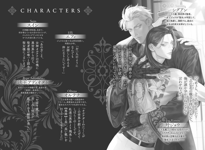 周りが全員、自分を「聖女様」と呼び称える。馬鹿にされているのかともろ肌を脱ぎ、観音様の刺青を見せつけたところ――「やっぱり聖女様だ!」とさらに周囲が盛り上がって!? あれよあれよと聖者・シグアンのもとへ連れていかれると、驚くほどの執着と愛情を彼から注がれてしまう。二人はバディとして並び立ち、やがて世界を救うために戦い始めるが――。WEBで大人気の異世界ファンタジーBL、ここに開幕!