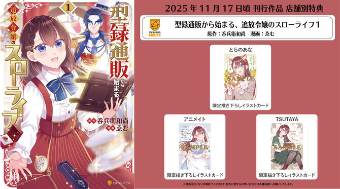 国内随一の商会を有する侯爵家の娘・クリスティナは、義兄に陥れられ家を追放されてしまう。旅商人として生きていくことを決意した彼女は、ひょんなことから異世界の商品を取り寄せられる、魔法の型録「シャーリィの魔導書」を読み解く特別な力を手に入れる!取り寄せた商品の珍しさに目を付けたクリスティナは、不思議な型録の力で国一番の大商人になることを目指す――!!