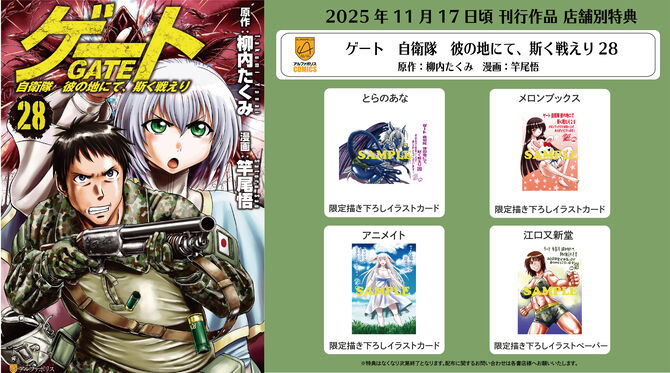 超スケールの異世界エンタメファンタジー、待望のコミカライズ第28弾! 陸自編、ここに完結! 銀座の「門」が破壊され、日本と特地の繋がりが消えようとする中、自衛隊は新たに出現した怪異の撃退にあたっていた。敵の数の多さもあって苦戦を強いられるが、意外な援軍がやってくる。一方、ピニャ率いる正統政府軍と皇太子ゾルザルの戦いは最終局面を迎えていた。ついに双方が残存兵力をかき集め、総攻撃を始めるのだ。果たして、特地の命運を左右する激戦の結末は如何に!?