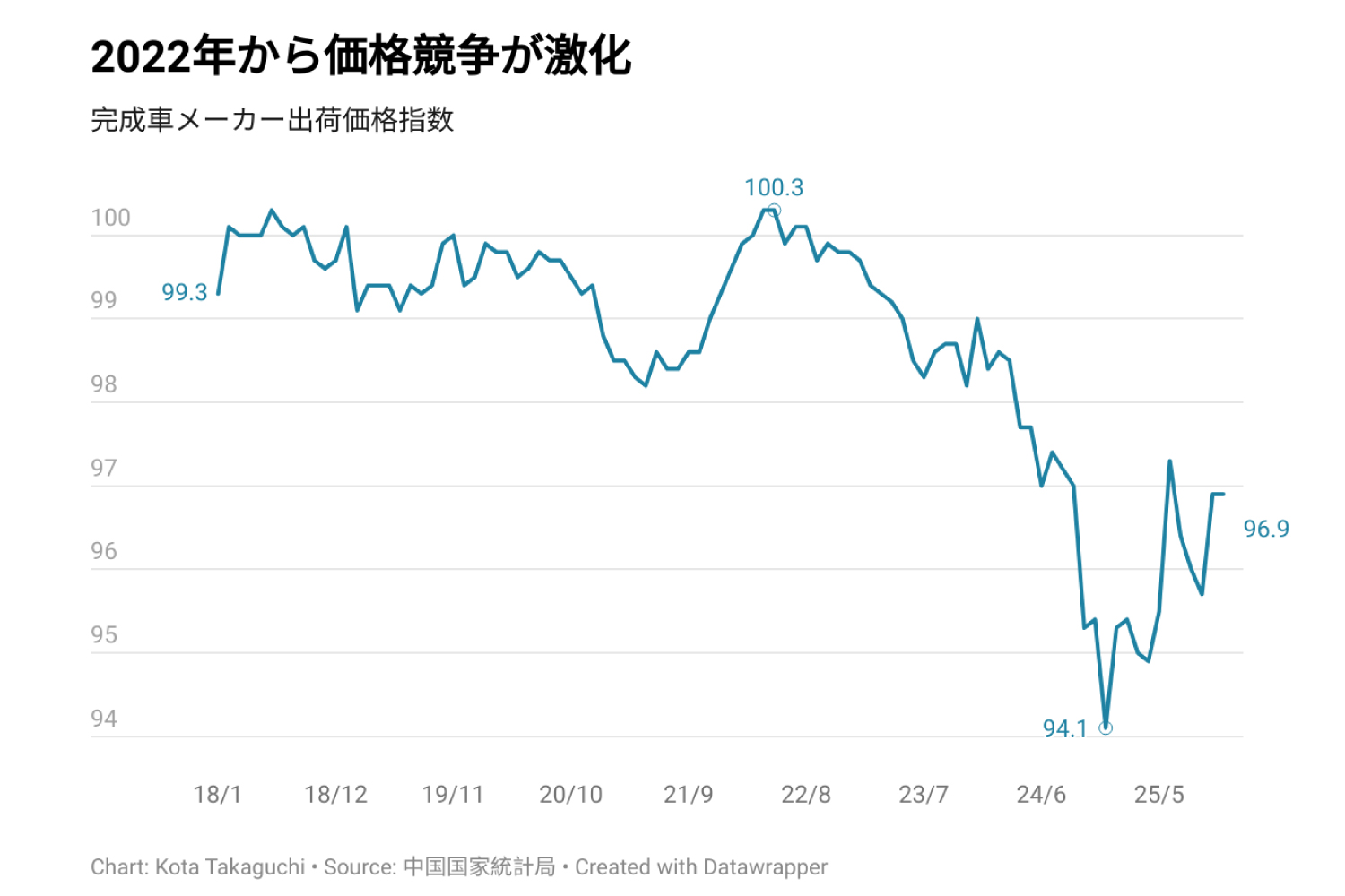 BYDが25年5月下旬に22車種の価格を引き下げるキャンペーンを始めたが、中国汽車工業協会は「産業の健全な発展を阻害し、消費者の利益を損なう」と批判。管轄省庁の中国工業情報化部も「無秩序な価格競争」だとして批判に加わった。
