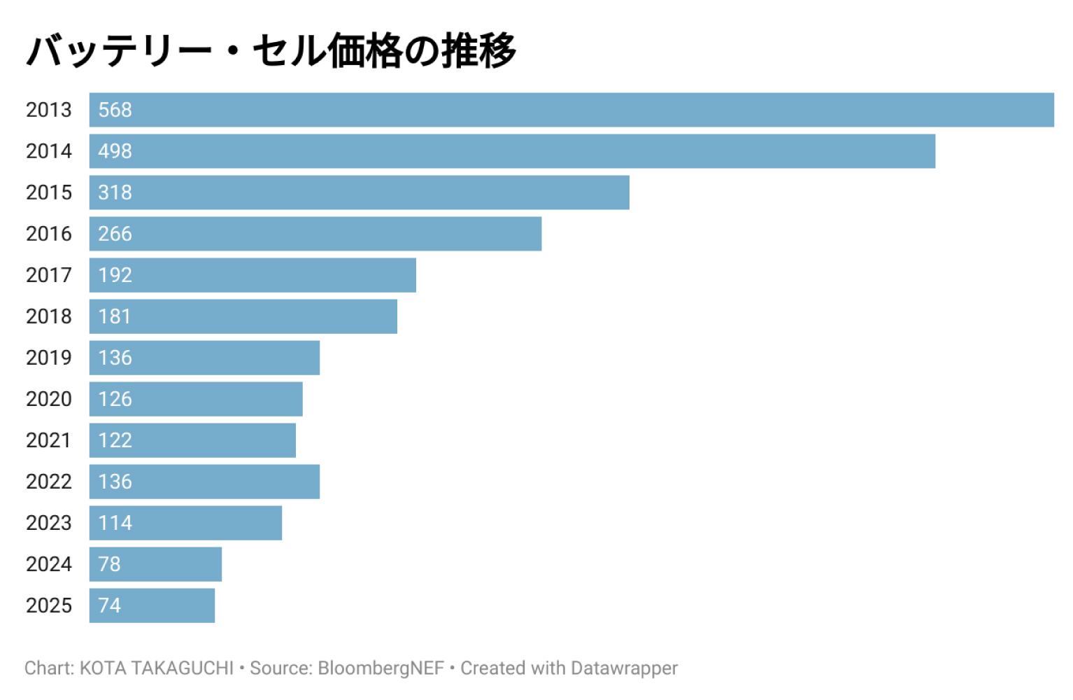一つには車載電池の価格下落がある。BYDはプラグインハイブリッド車に強みがある。搭載する電池の量が少なくて済むために低価格で航続距離が長く、コストパフォーマンスの高い車を作ることができる。しかし、車載電池価格の下落に伴って、プラグインハイブリッド車の優位性は薄れてきているようだ。