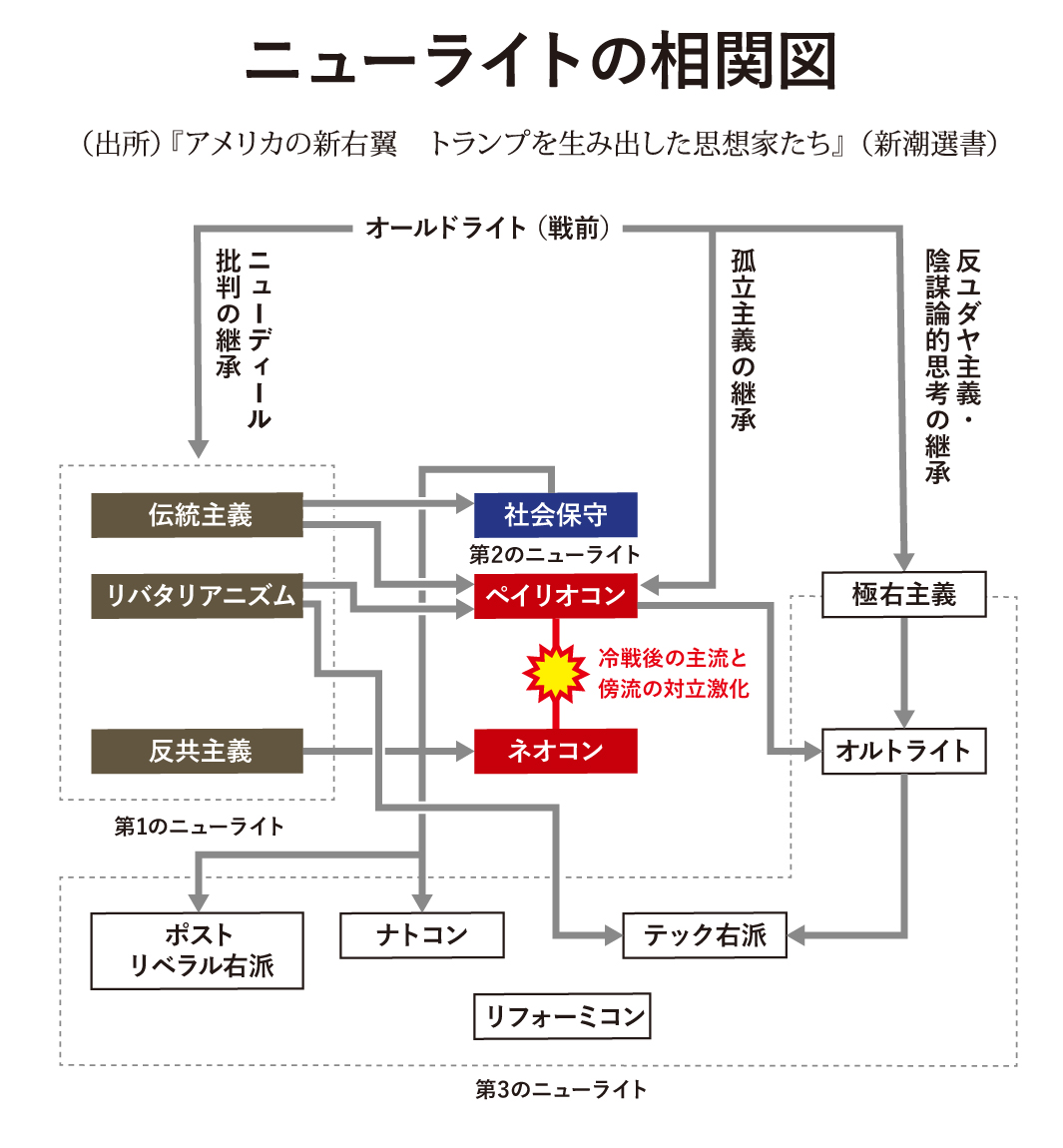 MAGA派の動きも重要であるが、もう一つ注目すべきなのが、ニューライト(新右翼)と呼ばれる右派のインテリ層である。知識人であるかれらは、人びとの暮らしとは別に、抽象的な思考をめぐらせる半ば浮世離れした存在である。だが、かれらの描く米国のヴィジョンはトランプ政権に確実に影響を与えており、長期的な視点からみて米国の行く末を左右している。米国の現在を考えるうえで、決して無視できない存在である。