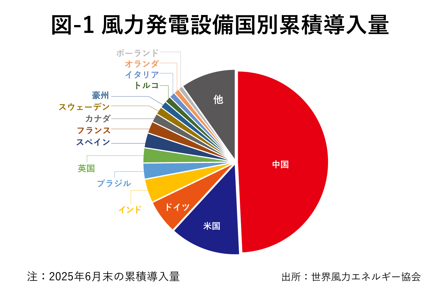 25年6月末現在、世界には12億4500万キロワット(kW)の陸上、洋上の風力発電設備が導入されている。そのほぼ半分は中国にある。