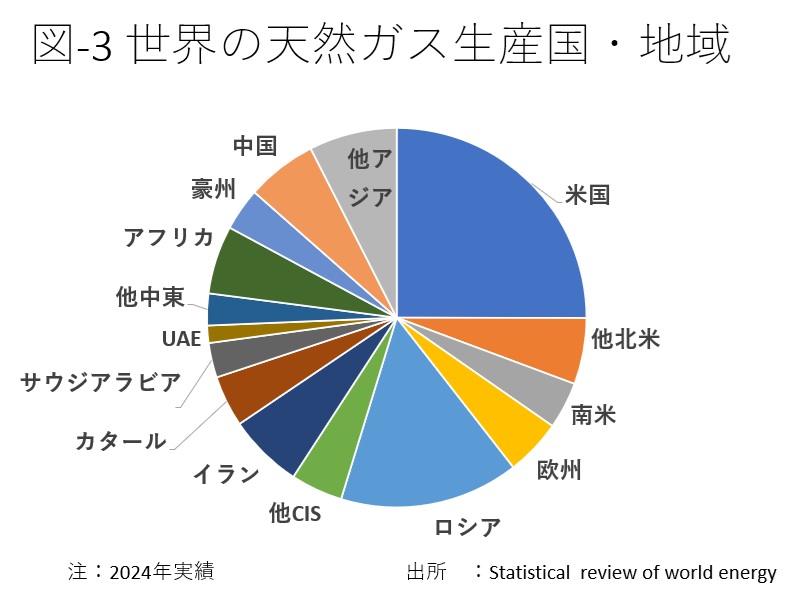 米国が世界シェアの25%を持つ天然ガス生産量では、中東諸国のシェアは18%に留まっている(図-3)