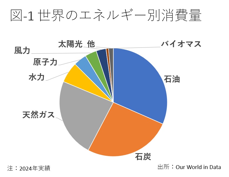 オイルショックを経験した世界の主要国は、エネルギー源の多様化を進め、液化天然ガス(LNG)、輸入石炭、原子力の活用を本格化させた。それでも石油の消費量は伸び続け、今も世界のエネルギー消費量の32%は石油だ(図-1)。