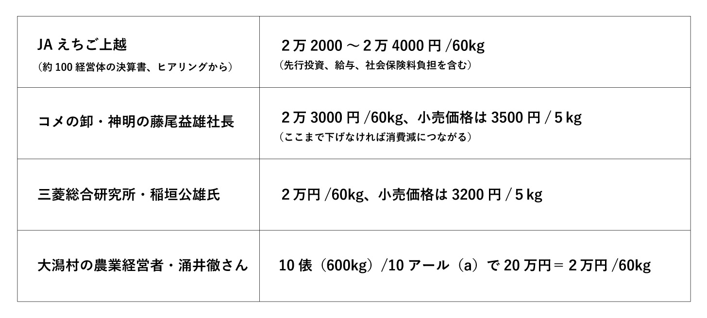 この水準は、かつて石破茂前首相が述べていた「コメの小売価格は3000円台でなければならない」にも応えられ、案外、生産・消費の距離は近い気がする。