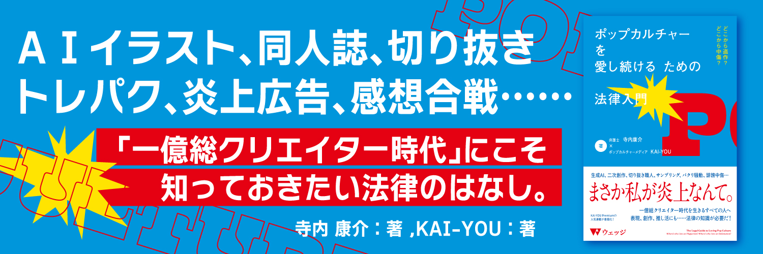日本の二次創作文化は、法的には微妙な位置づけながらも発展してきました。著作権侵害となり得る行為でありながら、権利者側の「お目こぼし」によって、最近は「ガイドライン」によって、一定の範囲内で認められてきました。そうしたことから、世間では「二次創作は法的にはグレー」と一言で片付けられてしまうこともありがちです。しかし、法的にどのような線引きがなされているかを知ることも、原作者側、二次創作者側にとって必要なことに思われます。