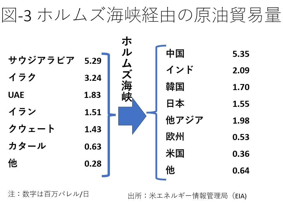 イランの主輸出港カーグ島からの出荷は、ホルムズ海峡を通過する必要がある。図-3の通り、25年第1四半期には一日当たり150万バレルが運ばれていた。