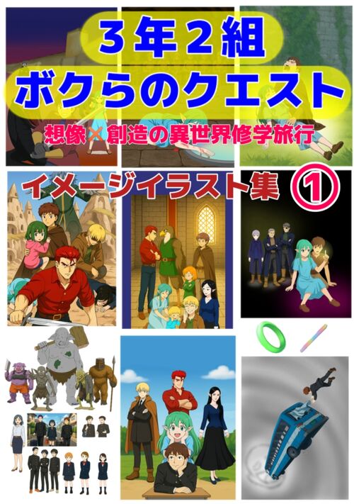 拙著長編ファンタジー「3年2組ボクらのクエスト〜想像✕創造の異世界修学旅行」のイメージイラスト集です。