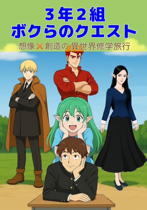 拙著長編ファンタジー「3年2組 ボクらのクエスト~想像✕創造の異世界修学旅行~」の主題歌用アニメコンテです。
