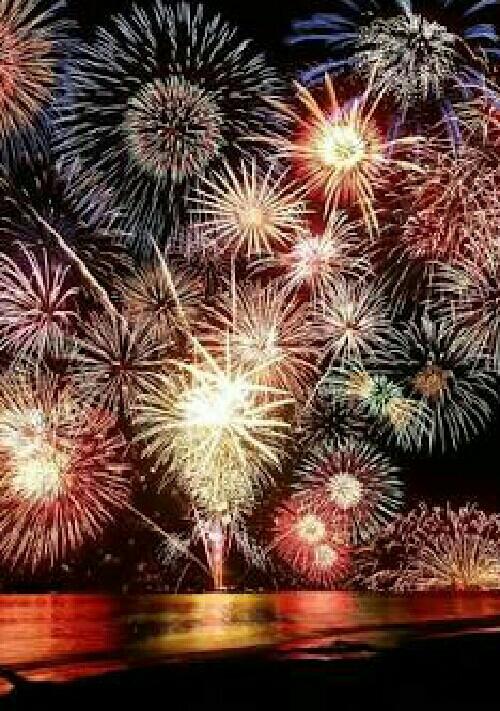 花火に照らされた