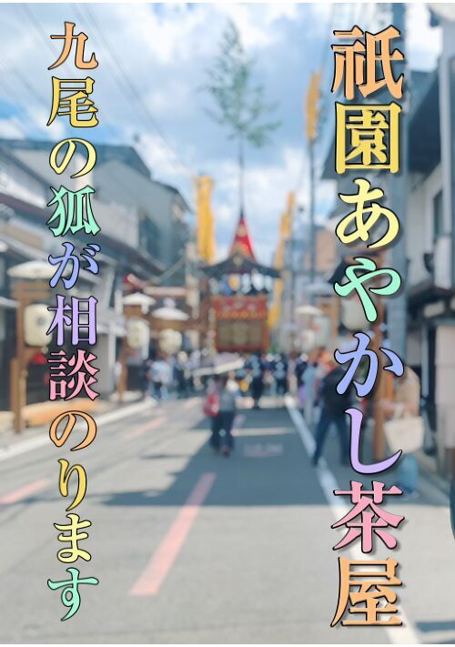 祇園甲部歌舞練場と神社の間の小さな通りにある茶屋〝烏滸〟では、女子高生のバイト塔子(本当はオーナー)と九尾の狐(引き篭もりニート)の吹雪が、縁切りを躊躇い〝安井金比羅神社〟に辿り着けない悩める人間たちの相談にのってます。