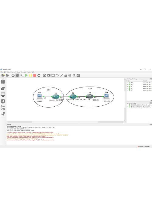 パケトレはBGPに対応していなかったけど、GNS3は対応していました。