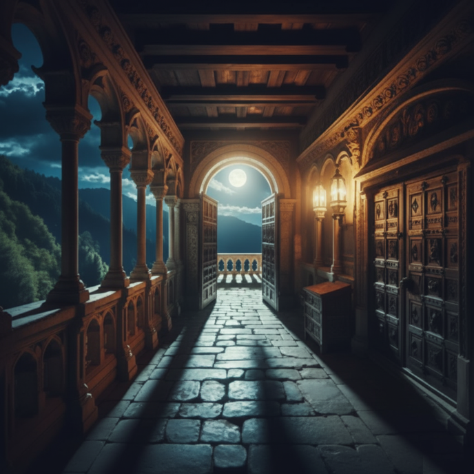 誘導灯が揺らめく階段を上がると、高窓から零れる月明かりが視界を少し鮮明にする。