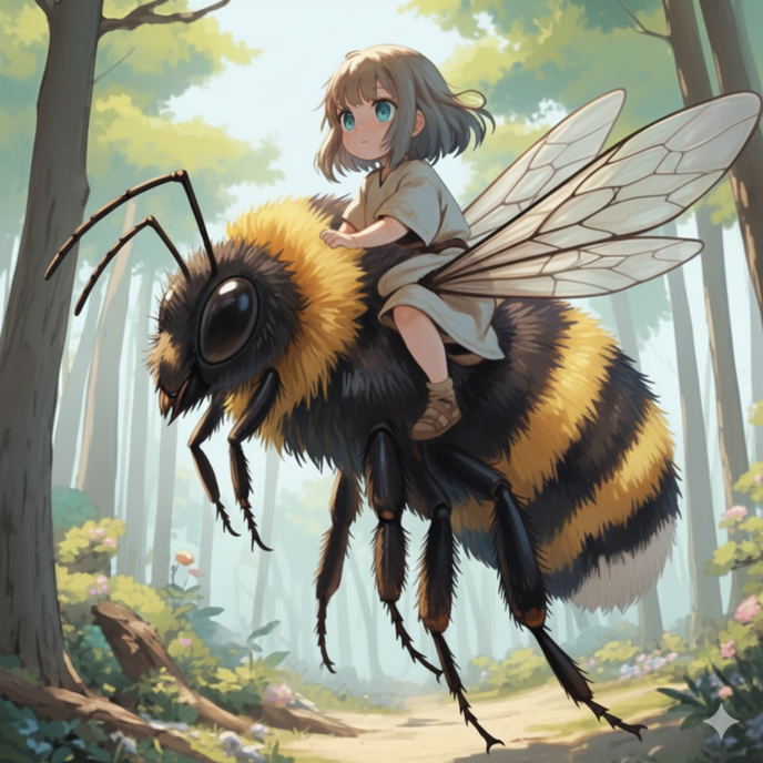 蜂は地に降り立ち、女の子が背からピョンと飛び降りた。