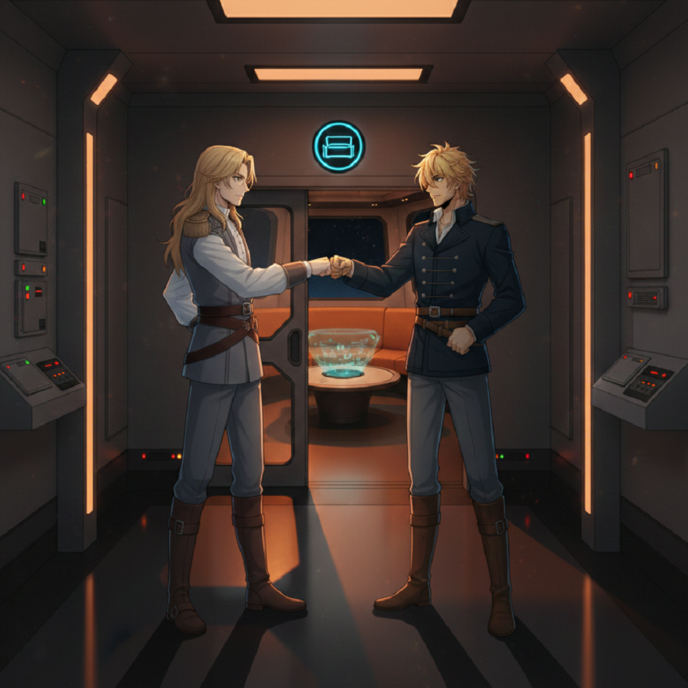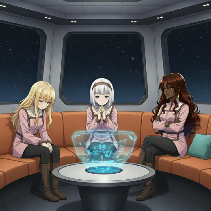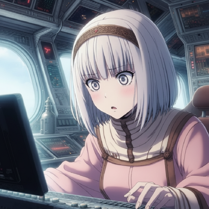 士官用シルバージャンプスーツを身にまとった上官様は、航海生活ですっかり髪が伸びて、