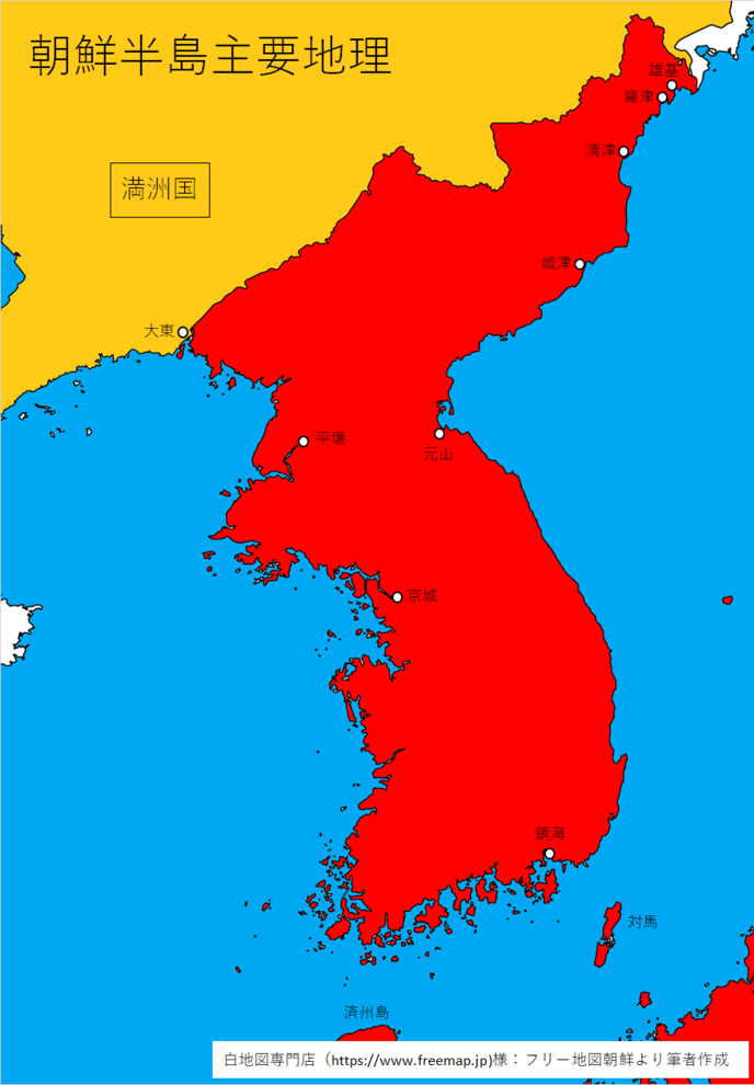 ソ連との国境に最も近い港である雄基港、そこからすぐ南に下ったところにある羅津港、さらにその南方にある清津港は北鮮三港と呼ばれている。