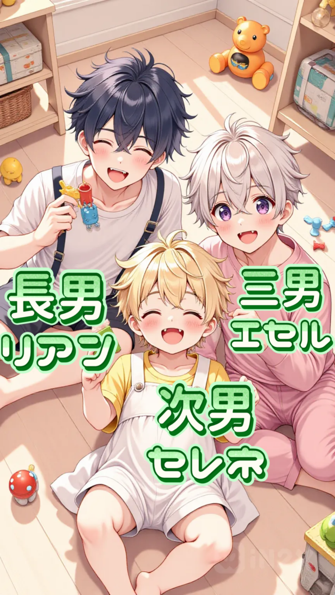 長男リアン、 次男セレネ、三男エセルは、興味津々で見ているかと思ったら、中庭に出て庭で遊ぼうと誘っていた。