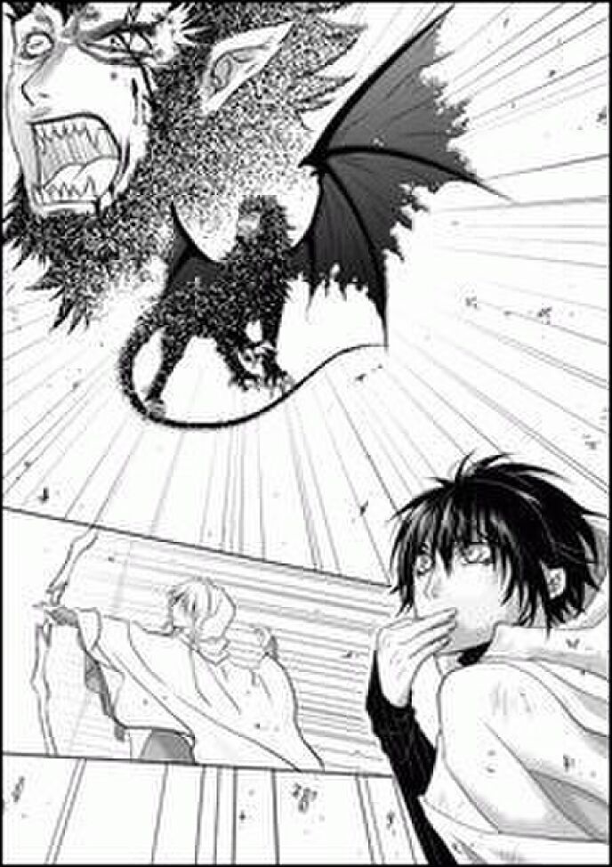その姿に、三人は驚愕した。人間と同じ顔をしており、体は獅子、背中にコウモリのような羽を持ち、尾の先が鋭く尖っていることが見て取れた。瞳は赤く、口からのぞく歯は鋭い。