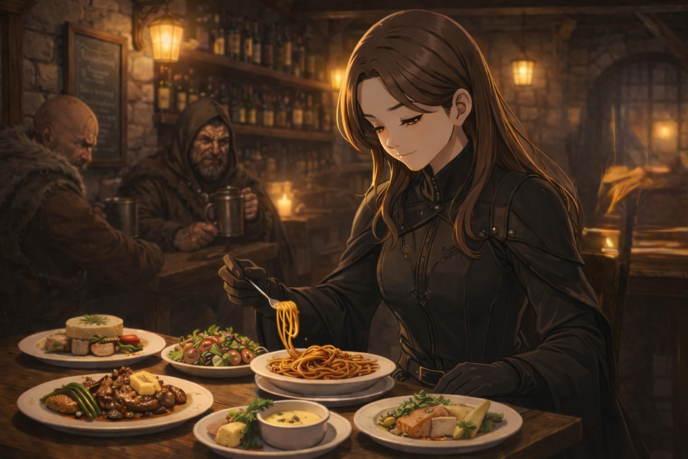 女は、ちらりと倒れた二人を見ただけで、何事もなかったように皿へ視線を戻した。
