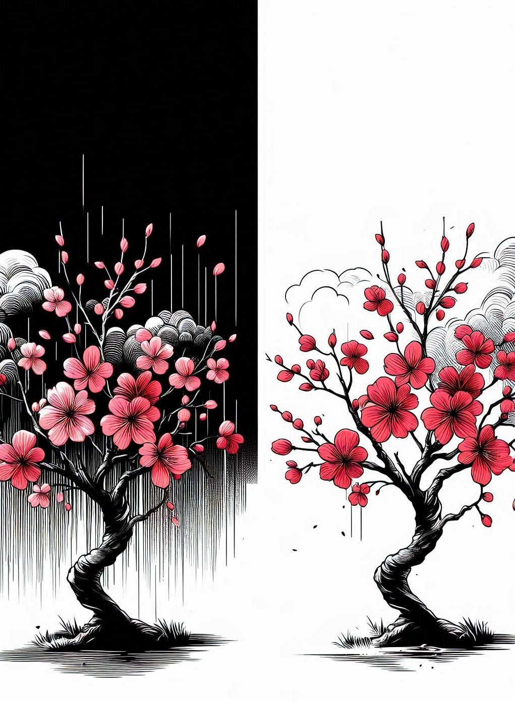でも、サクラはある日それじゃあ足りなくなってしまった。この世でいちばんうつくしいとまで噂のサクラを、その時分まだただの平民の子であったしゅんじつが一目見ようとやってきたのだった。そしてその一目で恋に落ちた。一番下まで落ちたのだ。そしてすぐに求婚した。この恋が陽炎と消えてしまわぬように。