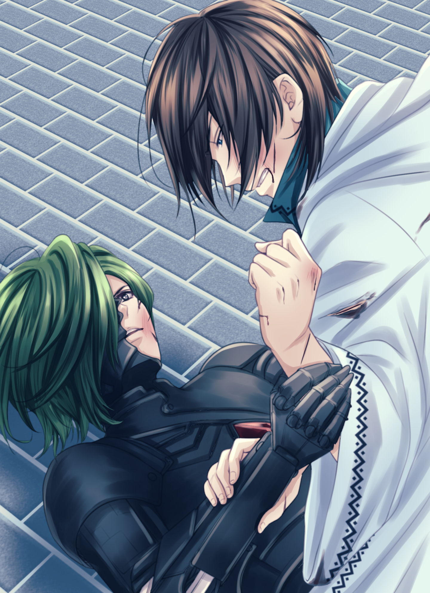 辺りにはレンガのブロックで覆われた床と壁、それ以外は何もないガランとした空間の中央に、緑色の髪、黒い瞳をした半分機械姿の幼馴染が笑う事もなくただ黙ってこちらを見つめていた。俺は一歩、二歩と、戸惑いながらもレスターとの距離を縮める。