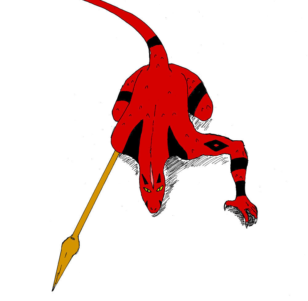 槍はギャガンの顔を翳め、一瞬で引き戻された。と同時にリゴリガは尻尾を地面に打ち付け後ろに跳び、左腕と両足で低い姿勢を保ちながらギャガンの周りを回り隙を伺う。