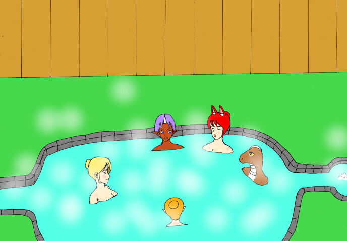 そう言うとラデメヒは池の横の小さな水場から湧く透明な水を被ると、スルリと温泉らしい池にその身を沈ませた。