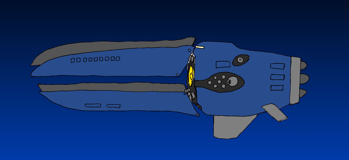 見下ろした先では船体の前半分、流線型のそれが四つに分かれ、艦橋下の戦艦内部が露出していた。