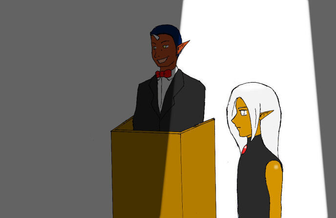 しおりを挟む「では今回のオークションの最後の商品となります!! エルダガンドから遥か南、海を渡った先にある黒い森に住むダークエルフ。そのダークエルフの少年です!! どうですか、艶やかな黒い肌に銀の髪と瞳!! まさに南洋の宝石といった佇まいではないでしょうか!? こちらの商品は初値は三千からお願いしたいと思いますッ!!」