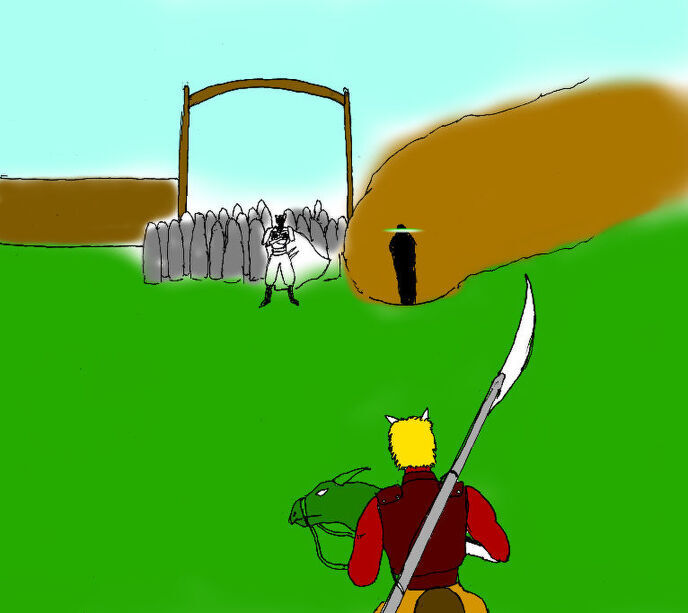 その一団の先頭、小型の竜に跨った隊長らしきオーガが騎士団を纏める金髪の男ランスを睨みつける。