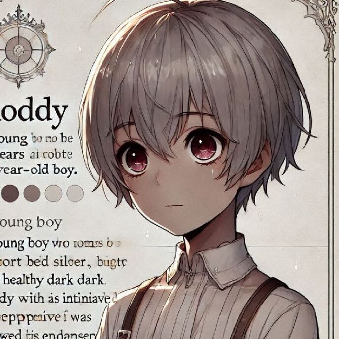 すると……静寂の中、古びた祭壇の前で一人の少年が跪いている。銀髪の少年、ロディーは、かつての悪魔の子爵としての姿を持ちながらも、今は無邪気で純真な8歳の少年として転生している。彼の手は合わされ、目には深い感謝の意が込められている。