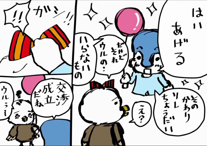 癒される謎の生き物に会えたゆうくんは楽しくなった。