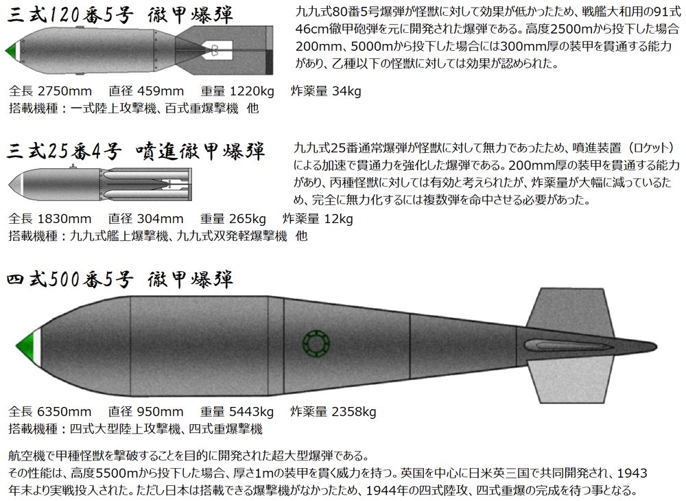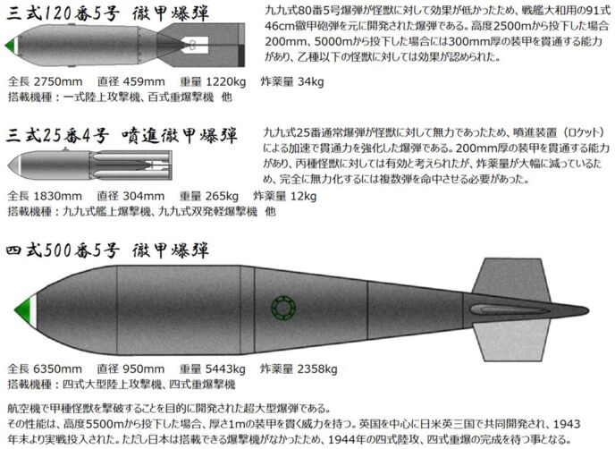 怪獣対策で航空部隊が活躍するには、その強靭な表皮を抜ける爆弾の開発が急務であった。