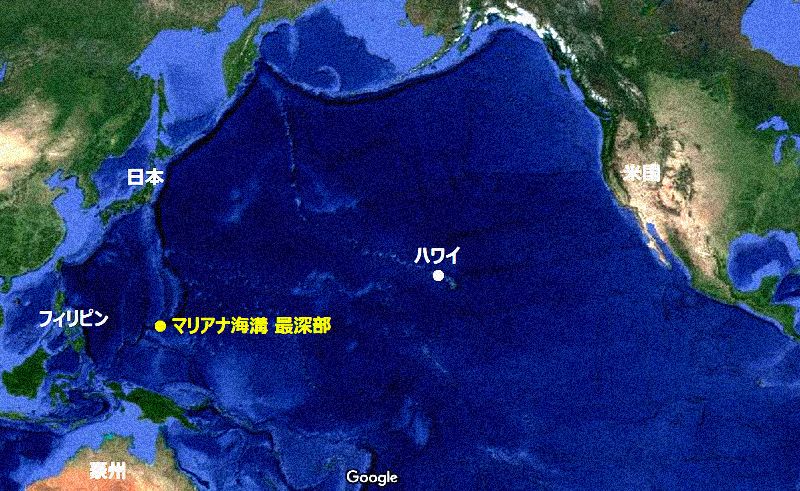 彼女はスクリーンの一点を指し示した。その場所は、日本の南およそ2500キロ、フィリピンの東2000キロ、マリアナ海溝で最も深いと思われる地点であった。