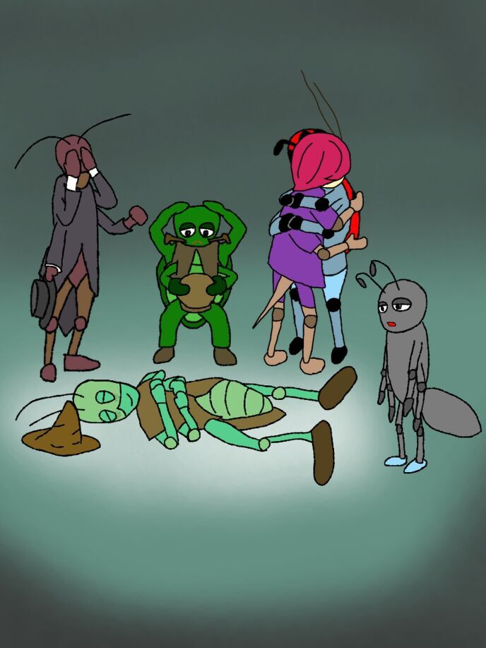 「……この冷え込みだし……やっぱりステージまでは持たなかったか……。 儚い命のキリギリスとは言え、早過ぎだぜギリィ……。終奏まで即興なんてよぉ……」