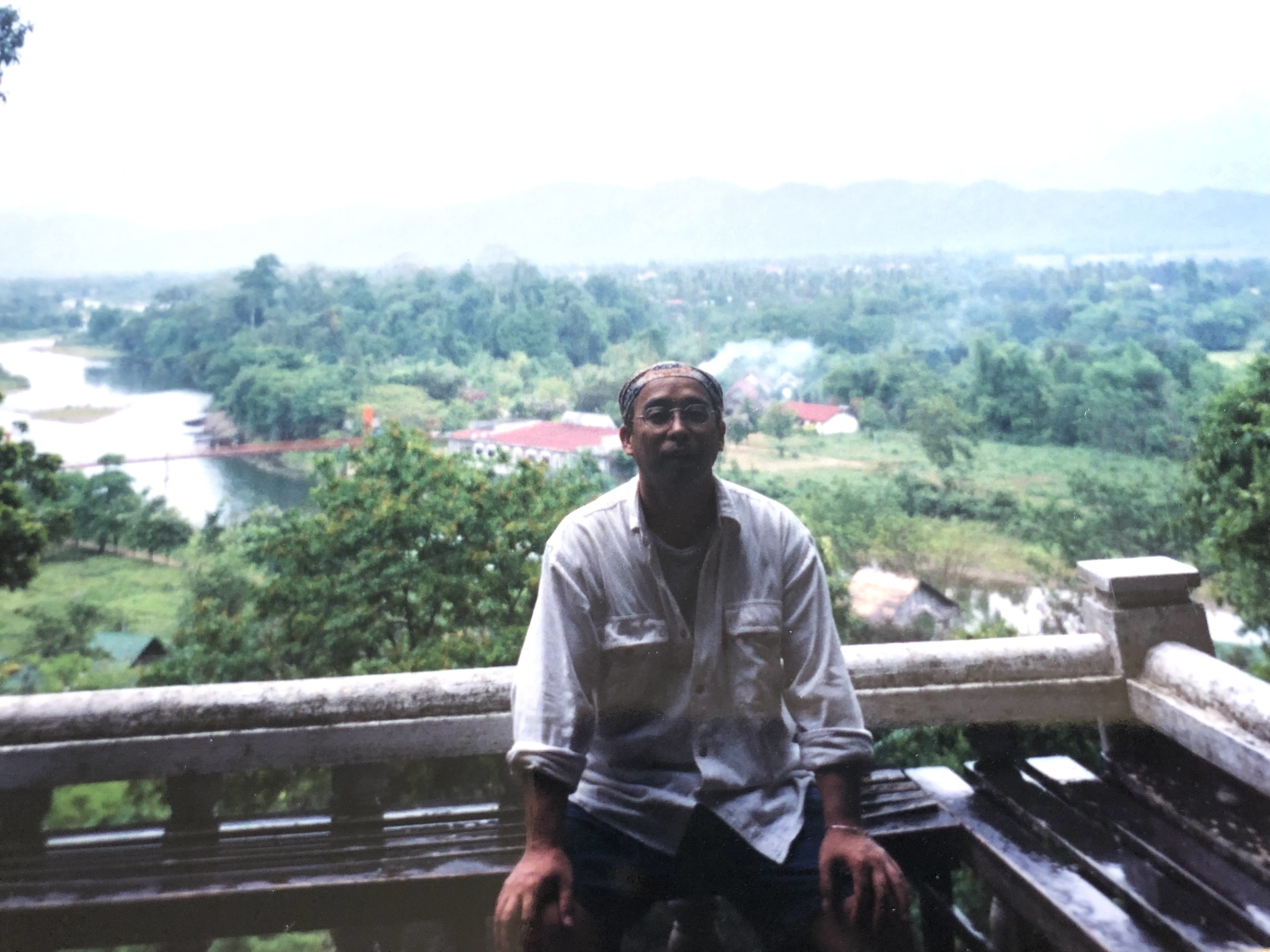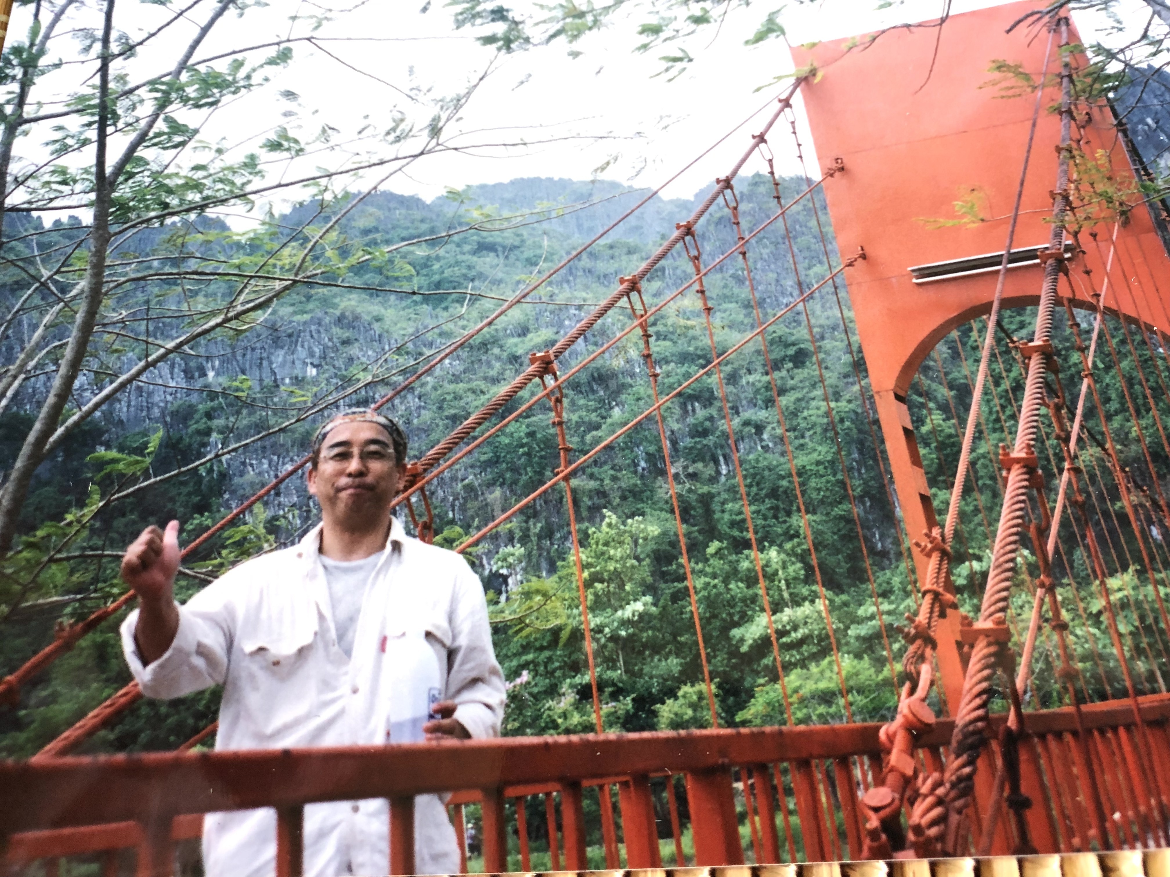 ◆バンビエンリゾートへの橋でおどける吾輩(笑)